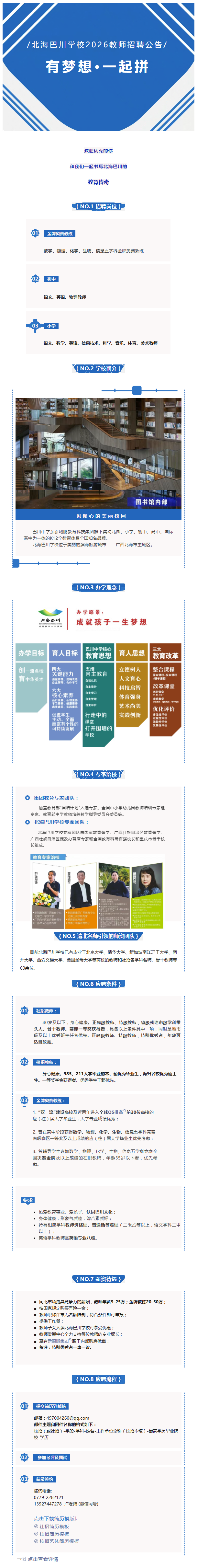 原標題:【北海巴川2026招聘公告】初中、小學教師、金牌奧賽教練