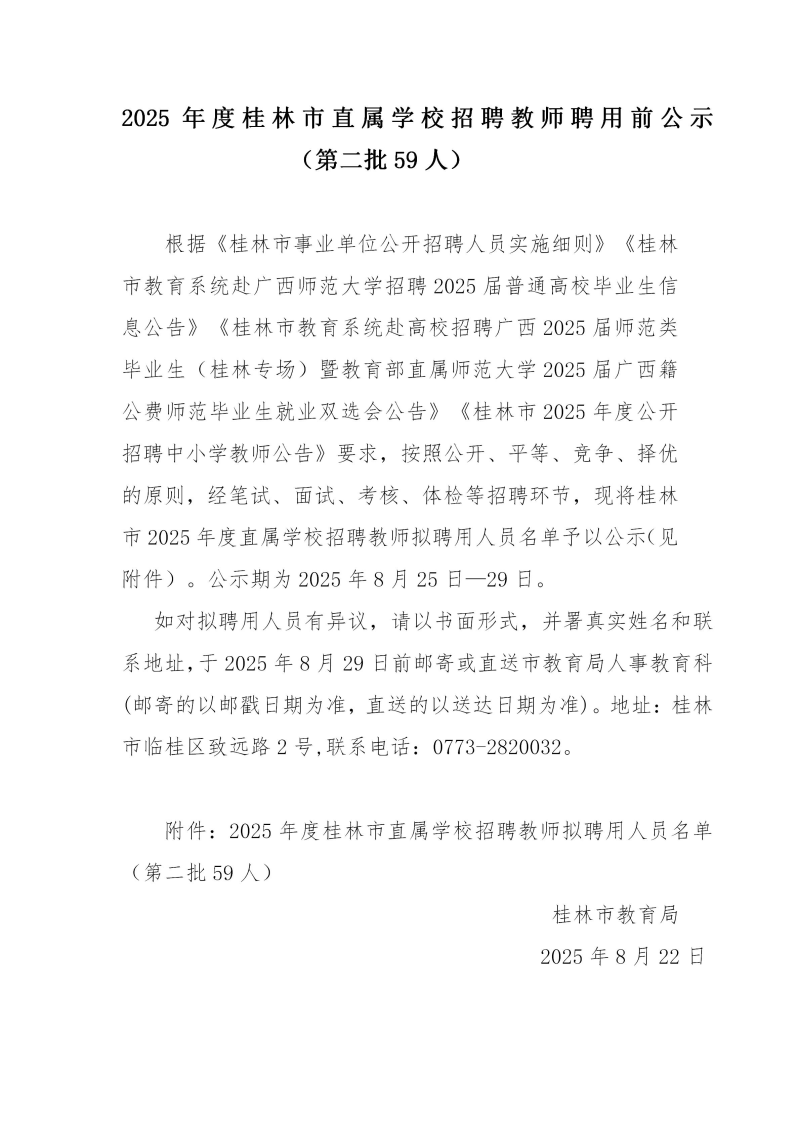 原標題:2025年度桂林市直屬學校招聘教師聘用前公示(第二批59人)